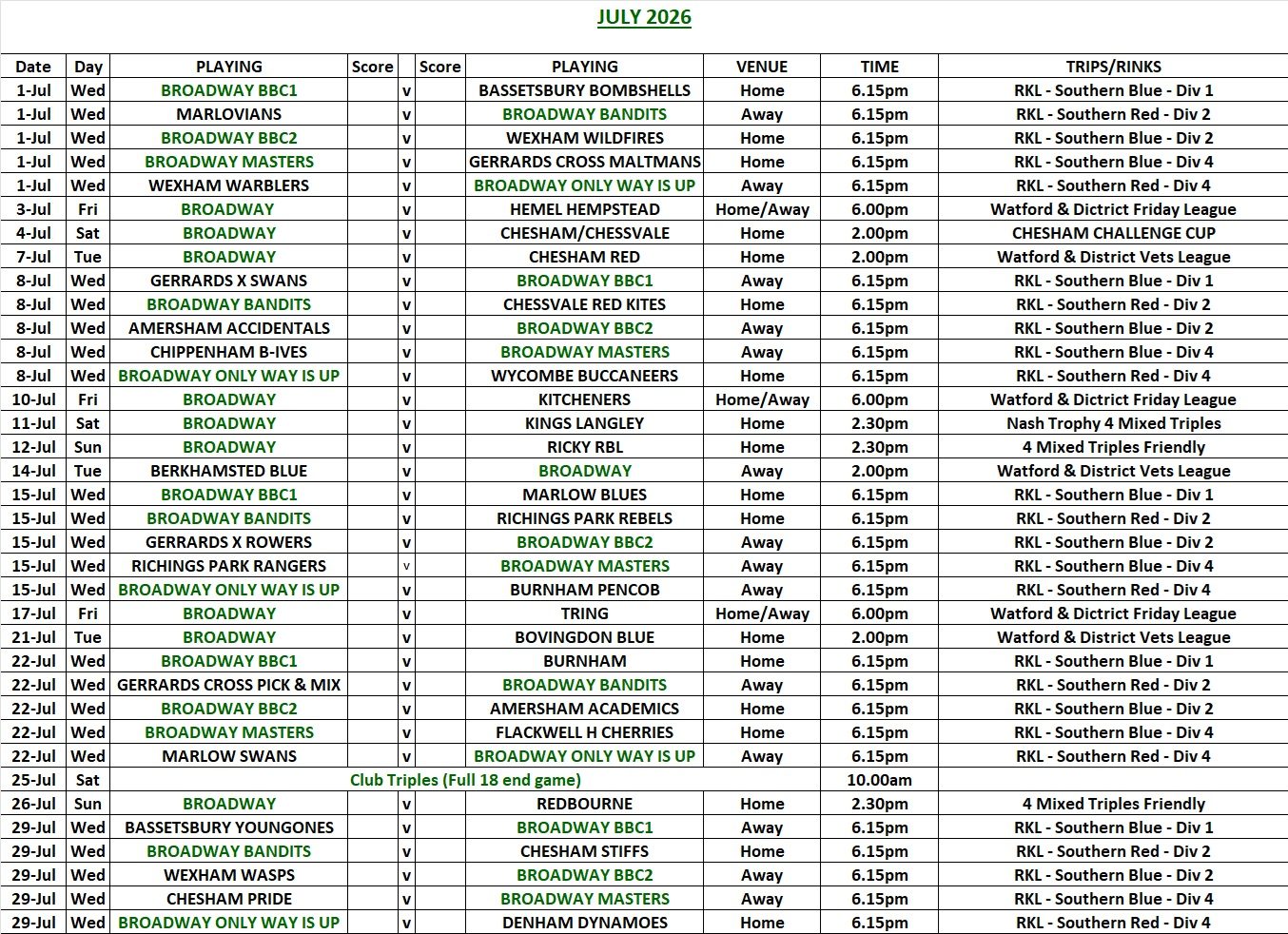 Please see below for the 2026 Club Fixtures.